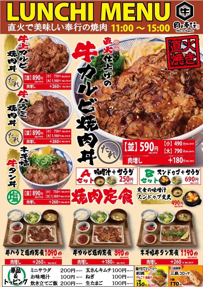 また、オープン記念として、「直火仕上げの牛カルビ焼肉丼 並」通常590円(税込649円)を8月8日(木)~8月14日(水)の7日間限定でオープン特別価格500円(税込550円)でご提供させて頂きます。