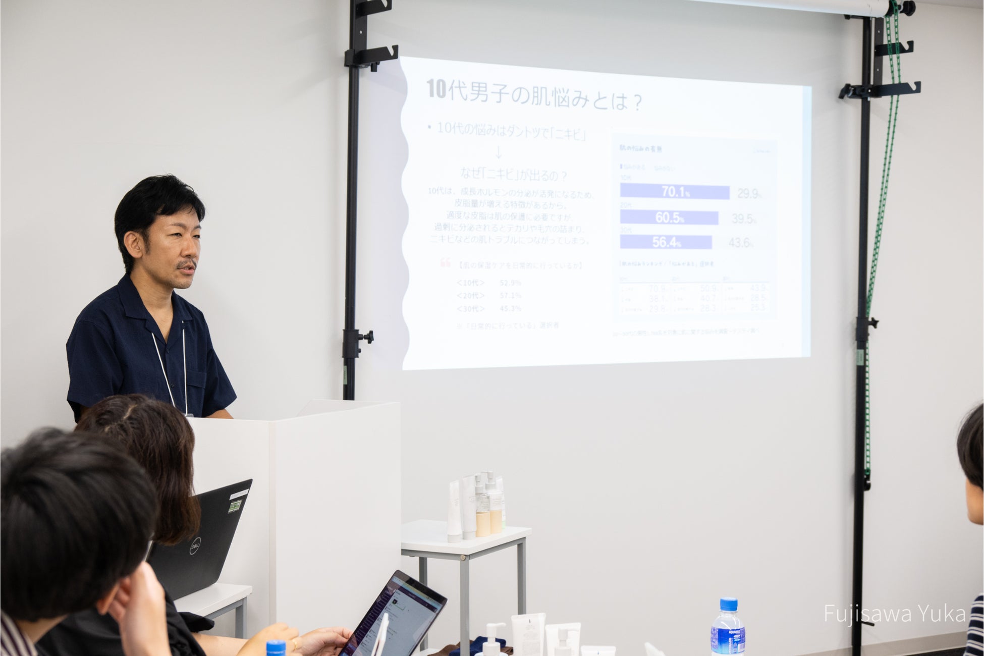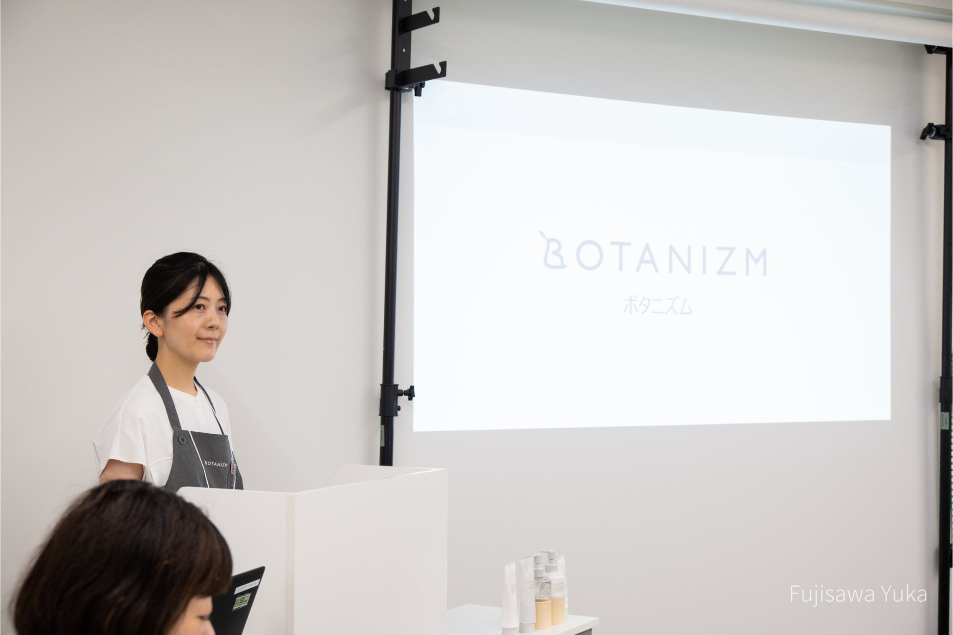 セミナーの後半では、ジェンダー&エイジ・ニュートラルなライフスタイルブランド「BOTANIZM」について、製品開発担当者より商品説明を行い、その後、洗顔方法と保湿ケアのデモンストレーションを実施いたしました。