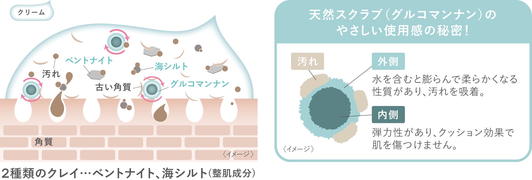 「ボタニズム クレイウォッシュ」には、こんにゃく由来の天然スクラブと、高い吸着力をもつ2種類の国産クレイが入っており、泡立てなくても毛穴の汚れや古い角質をしっかり取り除きます。