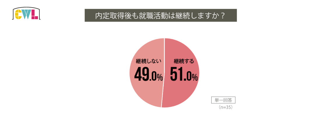 - 内定取得後も51.0%が就職活動を『継続する』と回答
