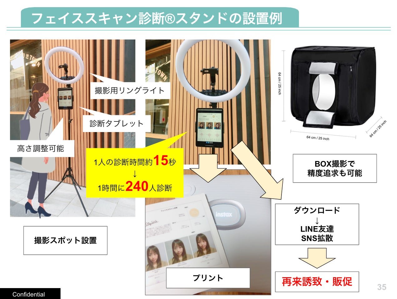 イベント内では、独自のAI技術を駆使し、お客様の顔のタイプ・黄金比・肌状態の分析を行いあなたに合ったコスメのご提案を致します。お一人おひとりに最適なメイクやスタイリングを提案する「フェイススキャン診断®️」を体験いただけます。AIだからこそ可能な客観的かつ緻密な診断で、自分に似合うヘアスタイルやメイクを知り、さらに美しくなるためのヒントを見つけることができます。