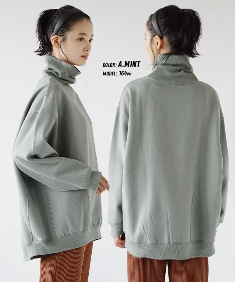 ざっくりとして大きめのタートルネック。寒さを感じやすい冬でも首元まですっぽりで、マフラーいらずの暖かさです。
