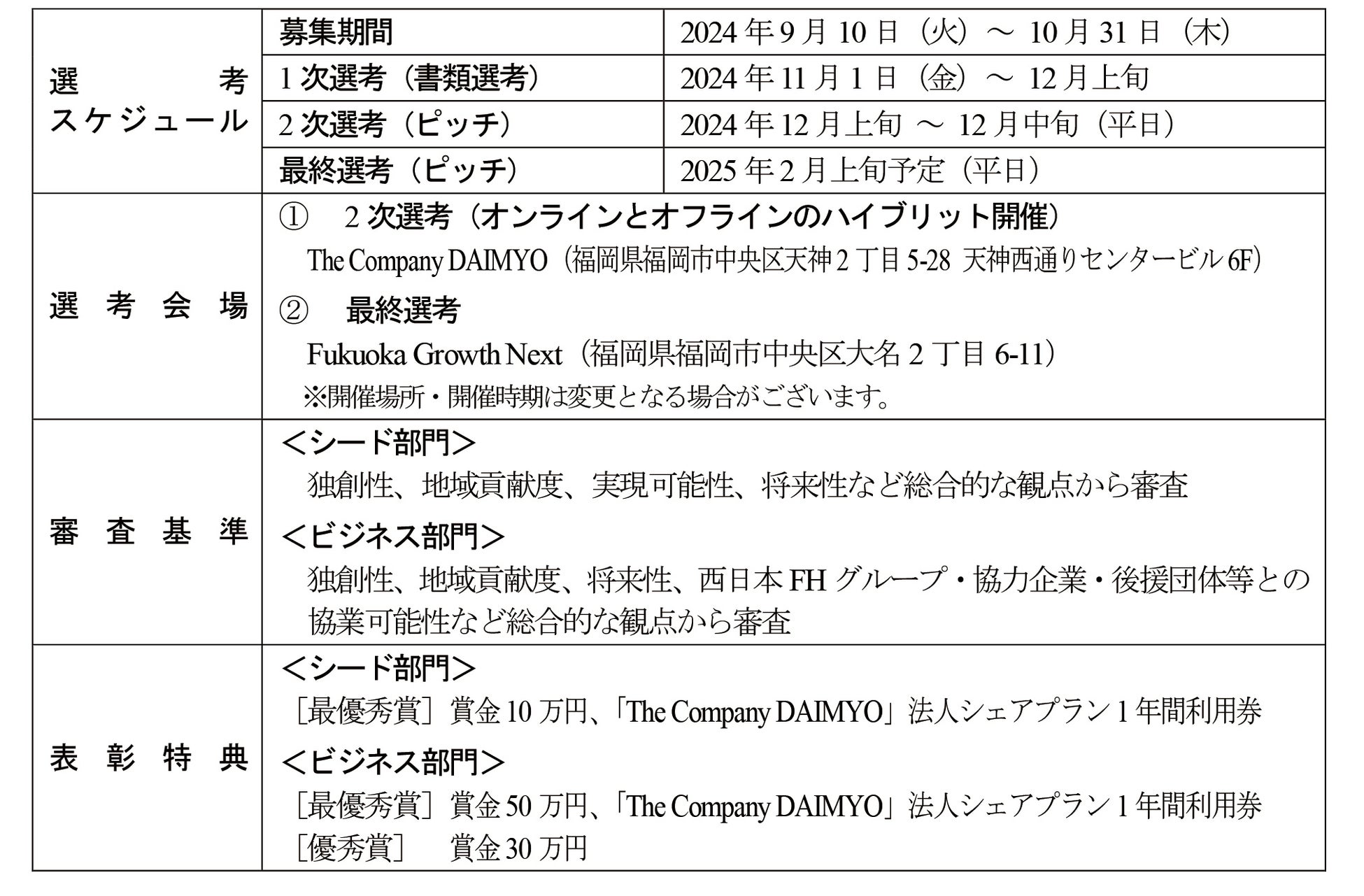 選考スケジュール・選考会場は、「シード部門」・「ビジネス部門」共通です。選考は2部門を同日開催します。