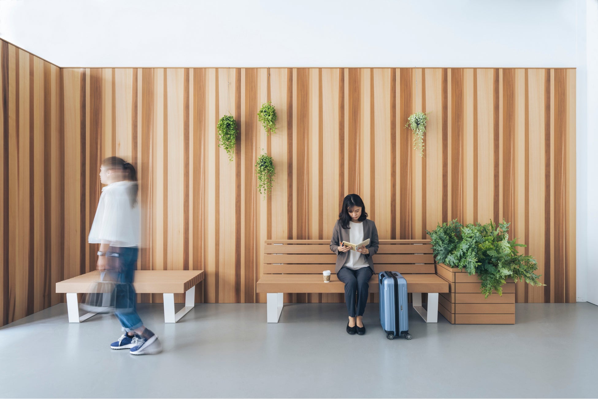 公共施設に最適な木製品のコラボレーションで、木の温もり溢れる空間を提供します。