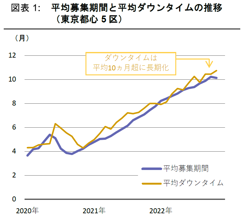 - 東京都心5区のダウンタイム(募集開始から終了までに要した期間)は平均 10ヵ月に長期化