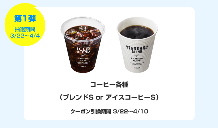 ・第1弾 コーヒー各種(ブレンドS、アイスコーヒーS)