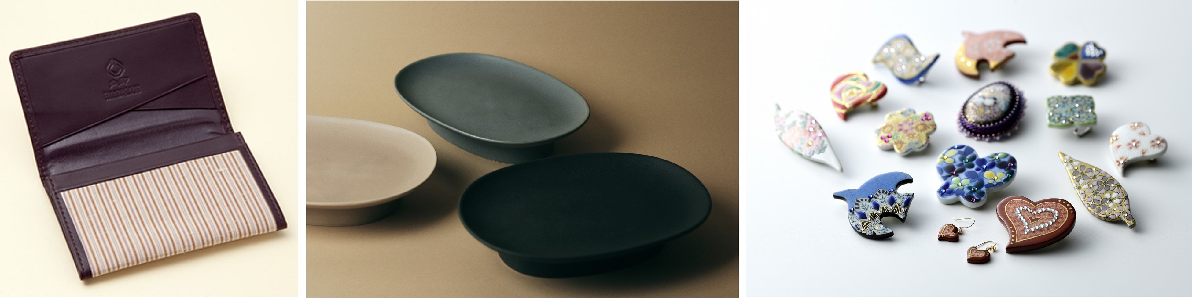 九谷焼の魅力をもっとたくさんの人に知っていただきたい。九谷焼のアクセサリーを作り、気軽に普段愛用していただきたい。という想いのもと、女性作家達の手によって生み出される作品。作家の個性が光る九谷焼アクセサリーは、特別な日に身につけたくなるような心ときめくデザインにこだわっています。一点一点手作業で制作されており、県内外のイベントで購入が可能です。