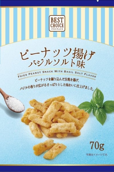 特徴:ピーナッツを練り込んだ生地を揚げ、バジルの香りが広がるさっぱりとした味わいに仕上げました。