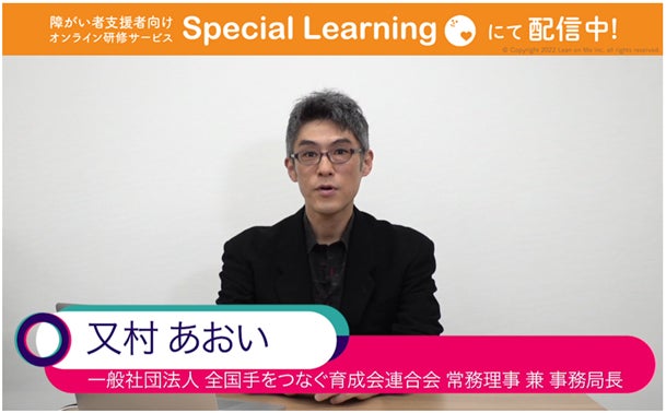 インクルTech※(インクルテック)で社会課題を解決する「株式会社Lean on Me」(リーンオンミー、本社:大阪府高槻市代表取締役:志村駿介)は、障がい福祉に関わる方を対象に提供している、障がい福祉専用eラーニング「Special Learning(スペシャルラーニング)」に、新たな研修コンテンツをアップしました。