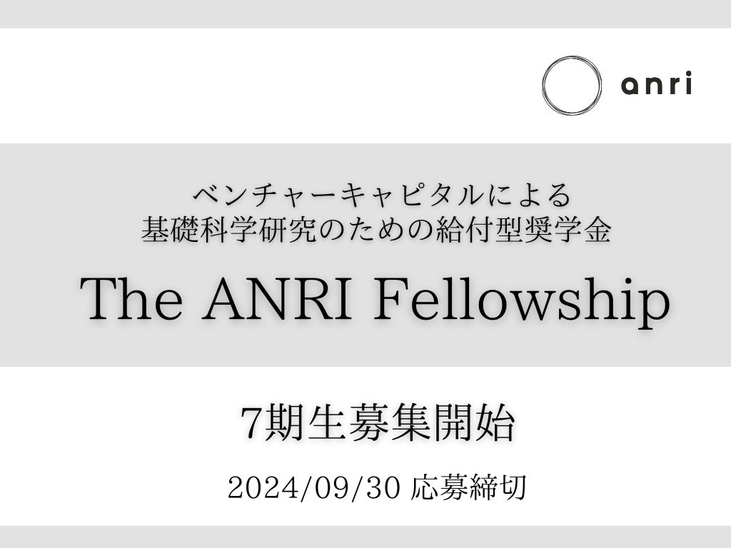 独立系ベンチャーキャピタルANRI(本社:東京港区、代表パートナー:佐俣アンリ、以下「当社」)は、日本の基礎科学研究への支援として、数学や物理学、生物学、化学など実用化までには時間がかかるが人類の発展に重要である基礎研究の分野に取り組む学生を対象とした給付型奨学金プログラム「The ANRI Fellowship」を2019年より実施しています。