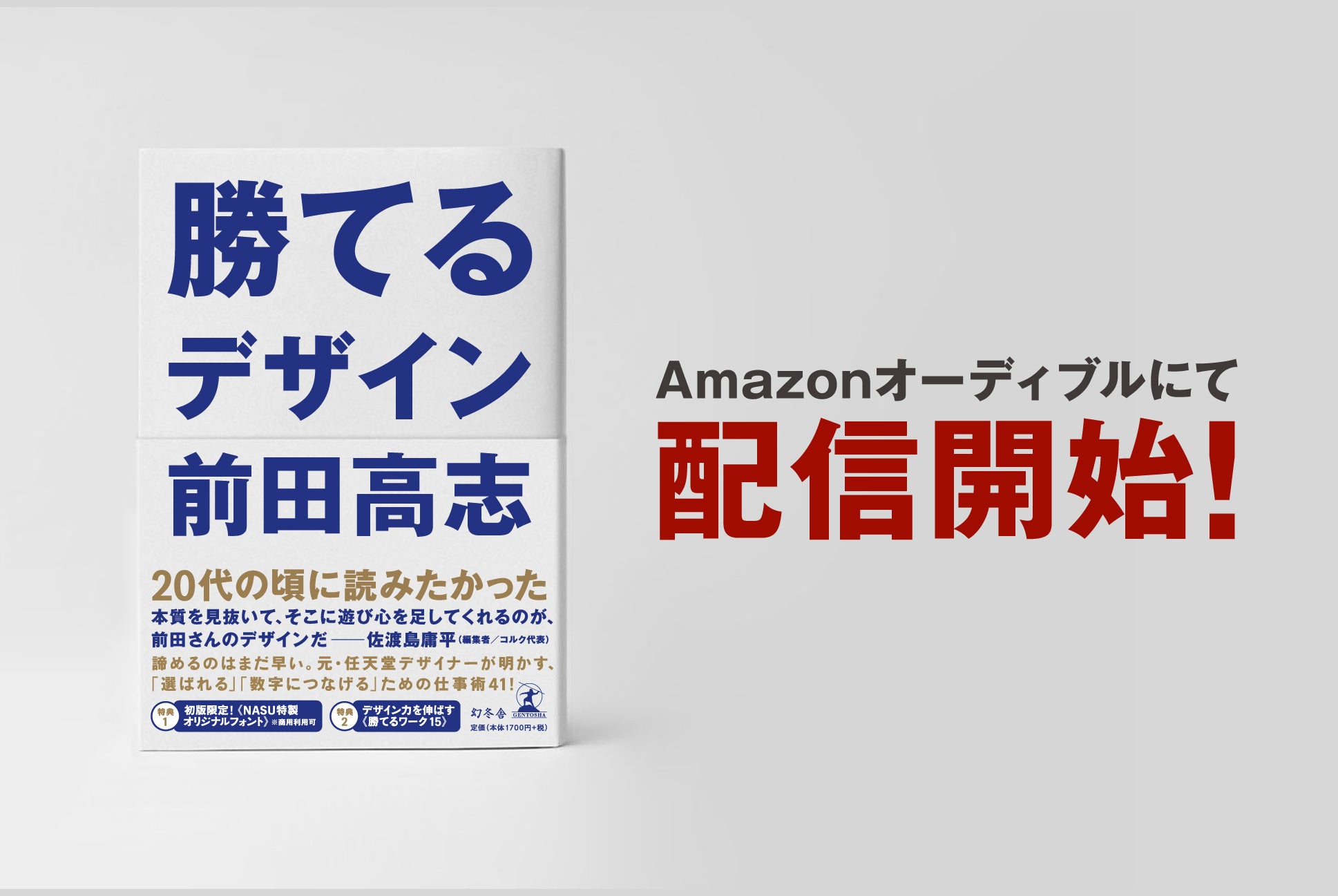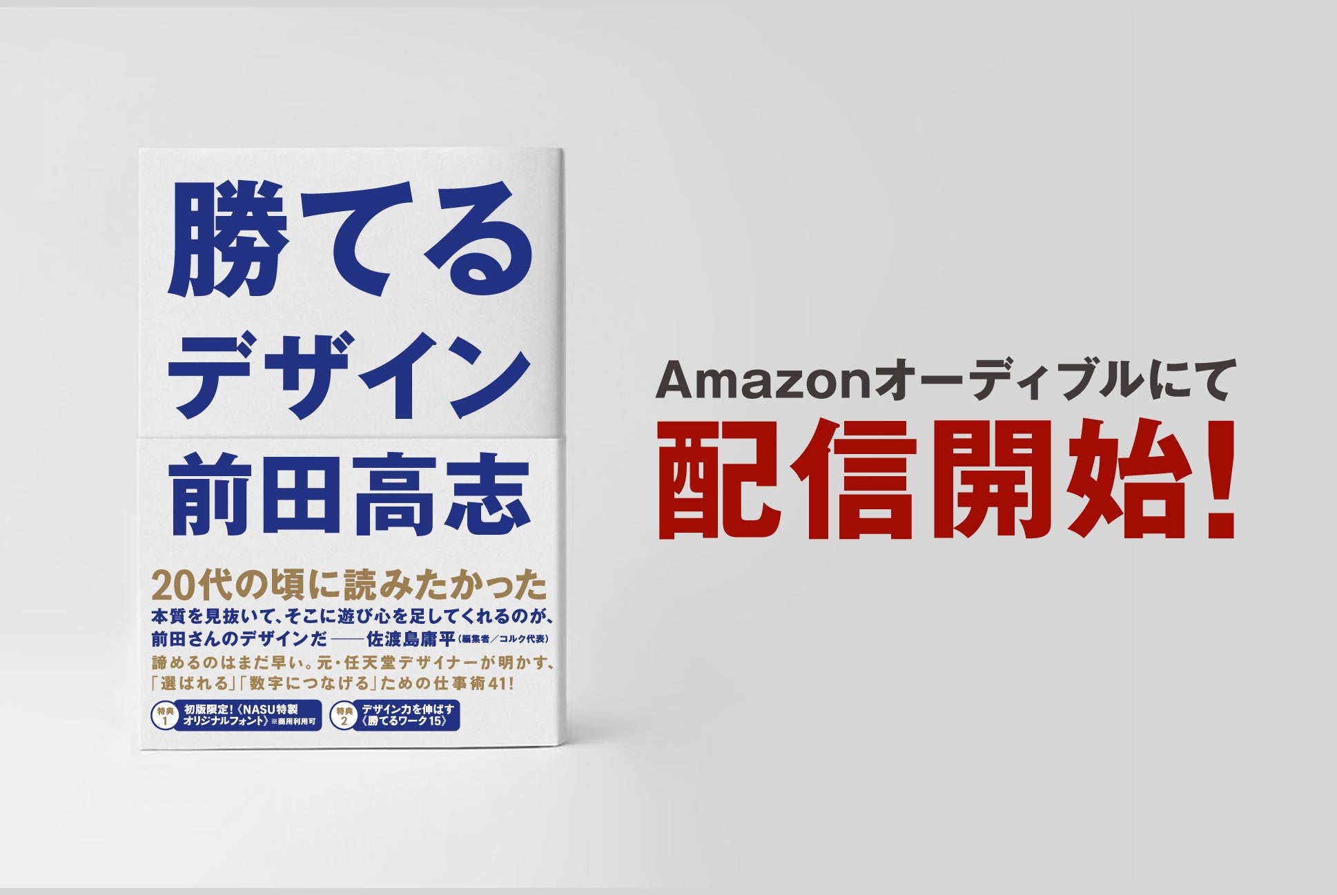 オーディオブック化は、より多くの人に「デザインの力と面白さ」を伝えられるきっかけになるので、非常にうれしく思っています。僕は、日頃から感銘を受けた本は必ずオーディオブックでも聞くようにしています。目で見落としたことを耳で拾いたい。そこには大事なことが多く目で見ることだけでは感じられなかった要素があったりするものです。現在執筆中の『勝てるデザイン2(仮)』に向けて、オーディブル版で『勝てるデザイン』をおさらいしようと思います。