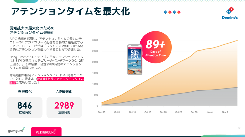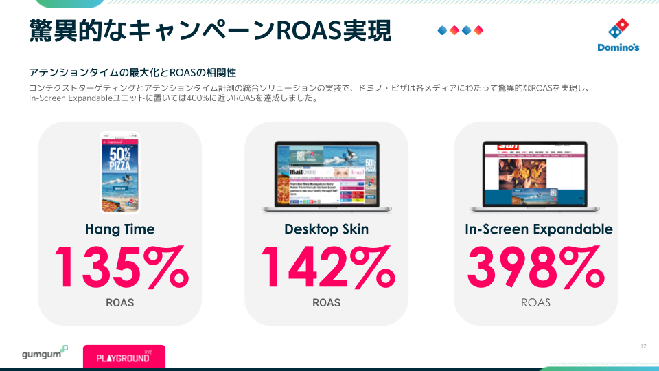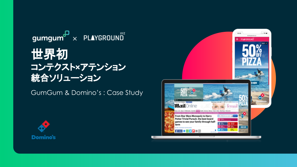 コンテクスチュアル広告のグローバルリーダーであるGumGum(本社:米国カリフォルニア州、日本支社:東京都千代田区、CEO:Phil Schraeder、以下GumGum)は、Playground xyzは世界初の取り組みとして、イギリスとアイルランドのドミノ・ピザの広告キャンペーンにおいてコンテクストとアテンションの統合ソリューションを提供しました。