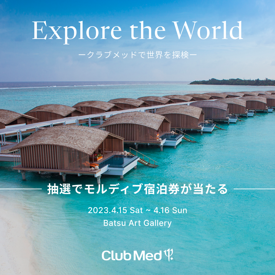 リブランディングを記念し、4月15日(土)・16日(日)の2日間、東京・表参道のBA-TSU ART GALLERY(バツアートギャラリー)にて「Explore the World ~クラブメッドで世界を探検~」と題したイベントを開催致します。