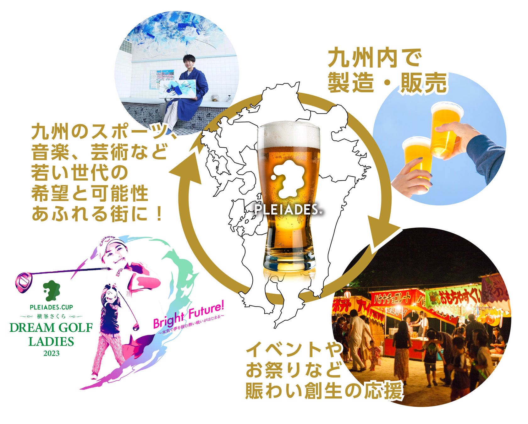 福岡・九州のスポーツ・アート・音楽・ダンスなどのスポンサードや大会の開催を通じ、その収益の一部が地域に還元される、「飲めば飲むほど人も街も幸せになる」ことをコンセプトにした、これまでにない新しい形でお届けする福岡・九州発のビールです。