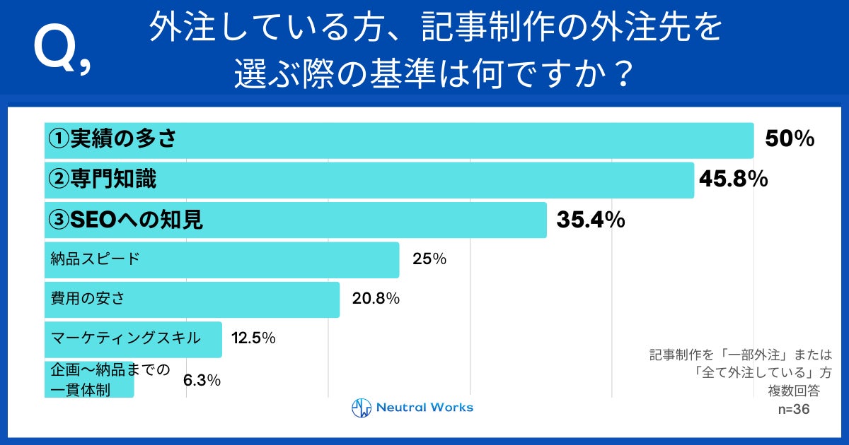 Q.記事制作を外注している方、記事制作の外注先を選ぶ際の基準は何ですか?
