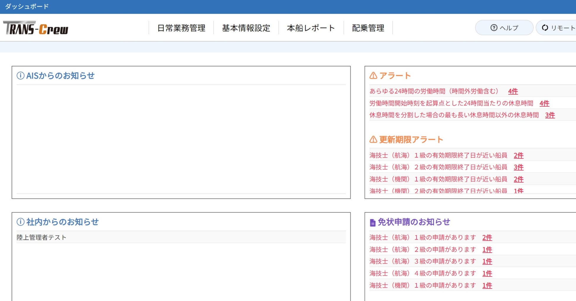 株式会社エイ・アイ・エス(本社:東京都千代田区、代表取締役社長:大浦 博、以下「AIS」)は、船員向け労務管理システム『TRANS-Crew』において、日本郵船株式会社(本社:東京都千代田区、代表取締役社長:曽我 貴也、以下「日本郵船」)と協業し、船員の資格および有効期限を一元的に管理する「資格・有効期限管理クラウドサービス」(以下「本サービス」)の開発を完了し、正式に提供を開始しました。