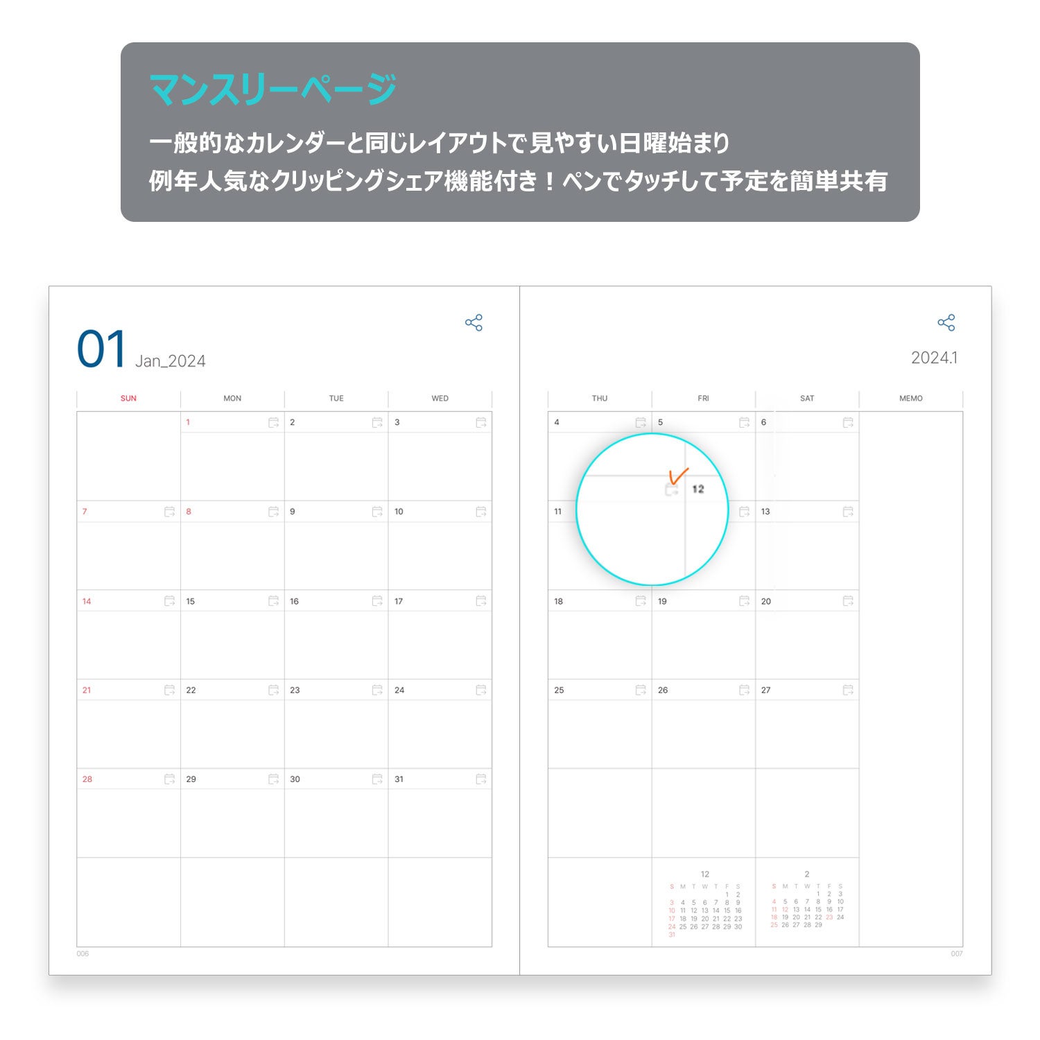 N planner 2024は、一般的なカレンダーと同じ日曜はじまりにリニューアルしました。