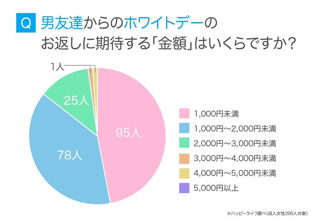 まずは、女性がホワイトデーのお返しに期待する金額の調査結果を紹介します。