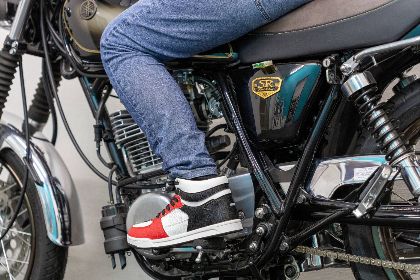 スニーカーライクなデザインとライディングシューズならではのプロテクト性・機能性を高いレベルでバランスさせているSCOYCOライディングシューズ。