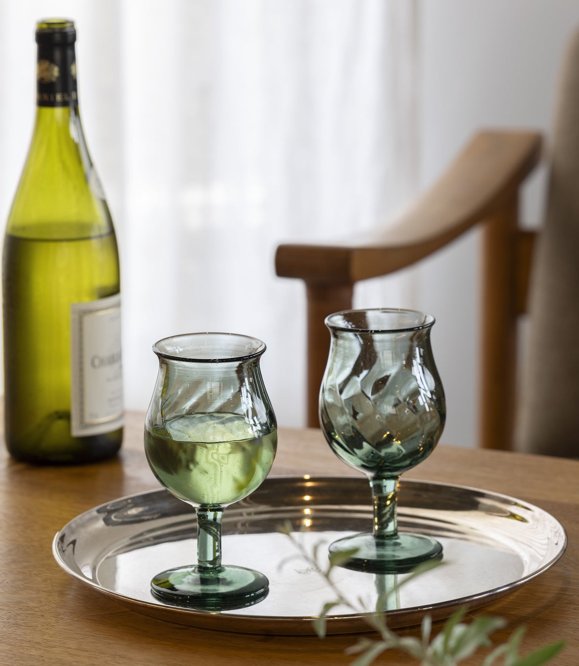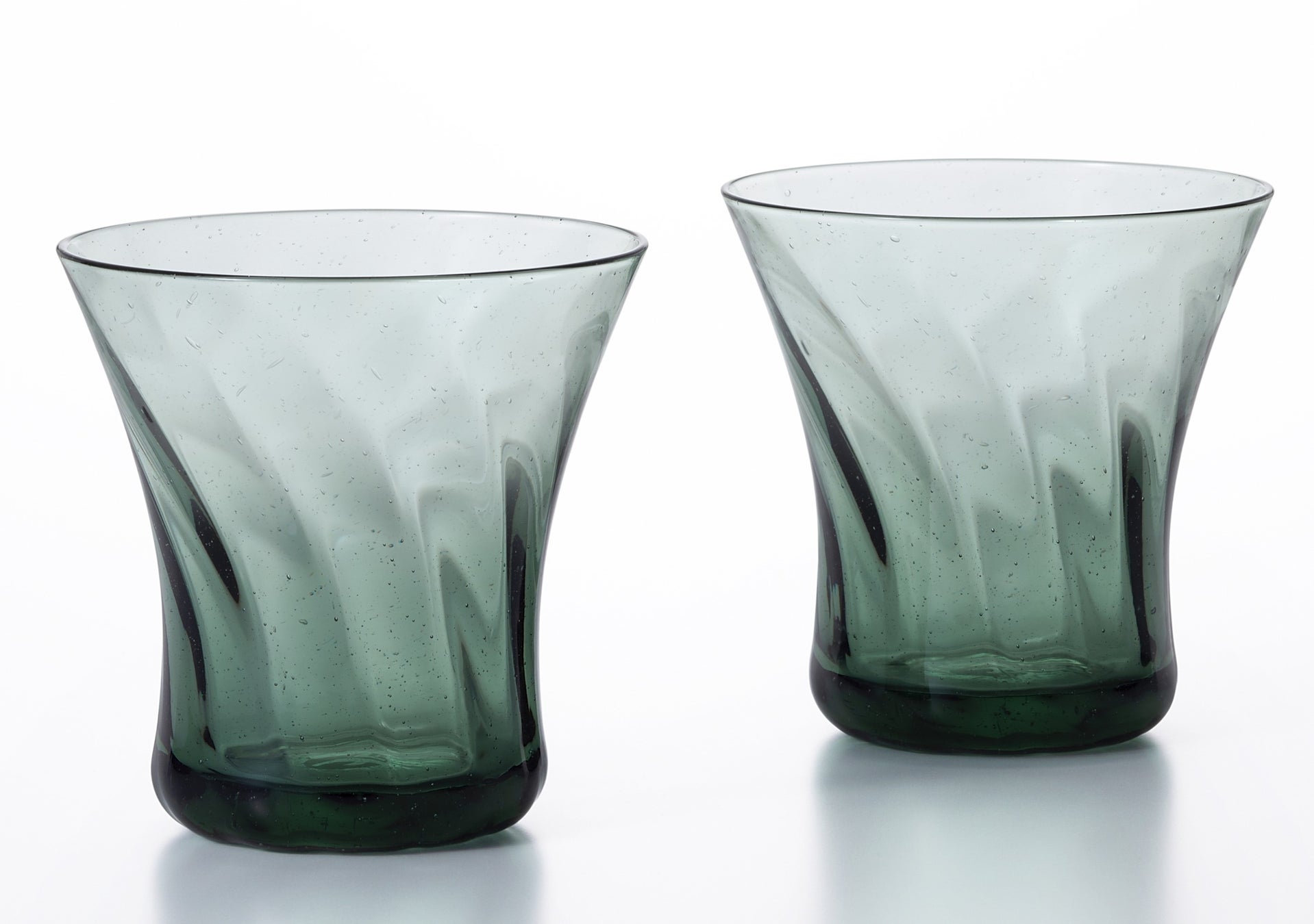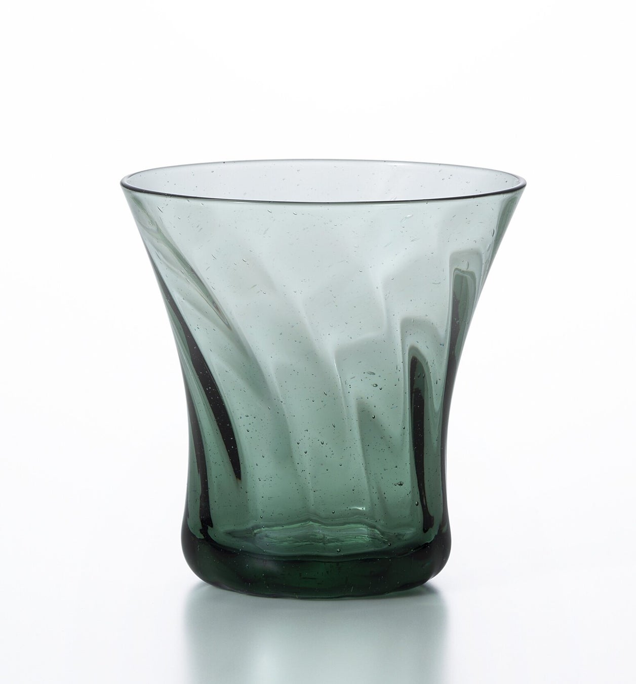 第二弾は、最大の特徴である浮玉100%再利用ならではの深みのある青緑色、曲線的でありながらシンプルな形状、海を想起させる波模様はそのままに、薄づくりに仕上げた口当たりの良いロックグラスや、伝統工芸士が仕上げる“宙吹き”製法の台付きグラスなど、暮らしの中で日々お使いいただける酒器アイテムを揃えました。