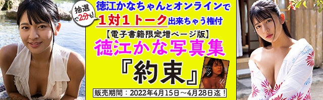 株式会社ジーオーティーは、昨年12月22日に発売をし大好評だった徳江かな写真集『約束』の電子書籍版を4月28日に配信開始することに伴い、抽選で15名に当たる、徳江かなと1対1で2分間トークができるオンライン握手会参加券付きキャンペーンを行う事になりました。