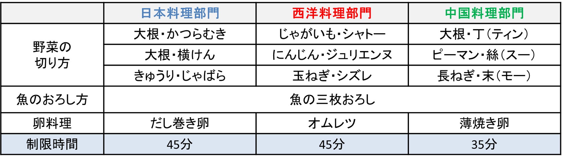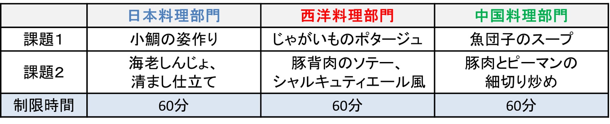 ※【競技時間】8:00~12:35日本料理/8:00~12:30西洋料理/9:00~12:00中国料理