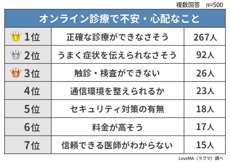 【オンライン診療で不安なことランキング】男女500人アンケート調査