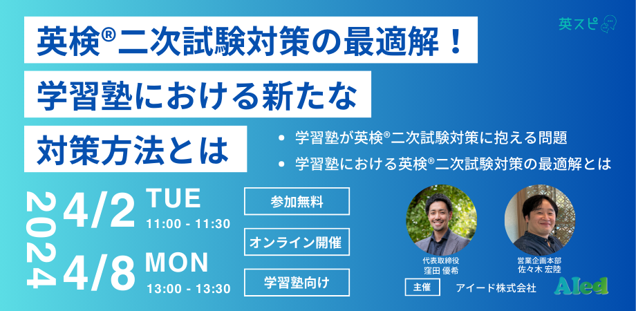 「英検®︎二次試験対策の最適解!学習塾における新たな対策方法とは」4月初旬に学習塾向けウェビナーを開催