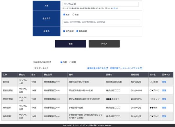 法人向けリスクデータベースを開発・提供するKYCコンサルティング株式会社(本社:東京都千代田区、代表取締役:飛内尚正、以下KYCC)は、6月3日より反社チェック(コンプライアンスチェック)ツール「RiskAnalyze」(リスクアナライズ)に、新聞記事データベースとの連携を強化し、AIを活用し自動要約された記事を新聞記事データベース上で即座に確認できる新機能を追加したことをお知らせいたします。