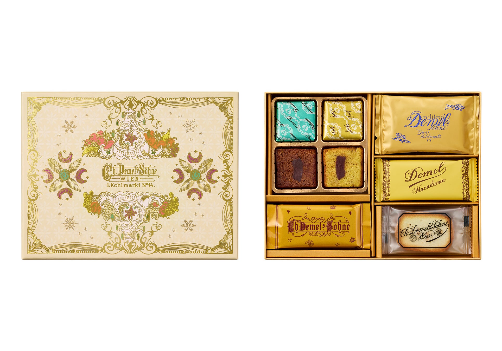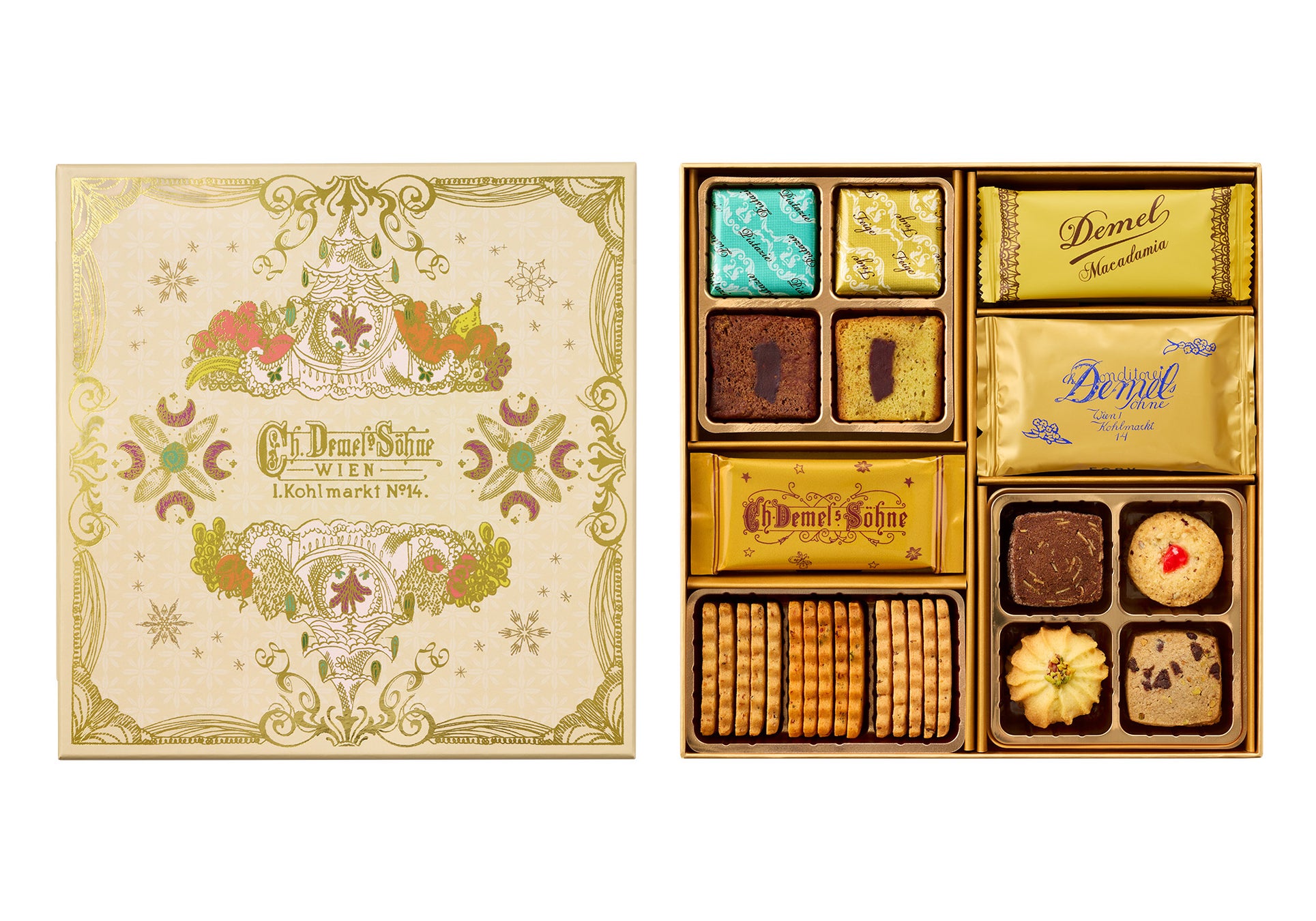 商品特長:デメル人気の焼き菓子を期間限定のアソートボックスに詰め合せました。美しく優雅なパッケージは、季節の贈り物やお手土産にもお薦めです。