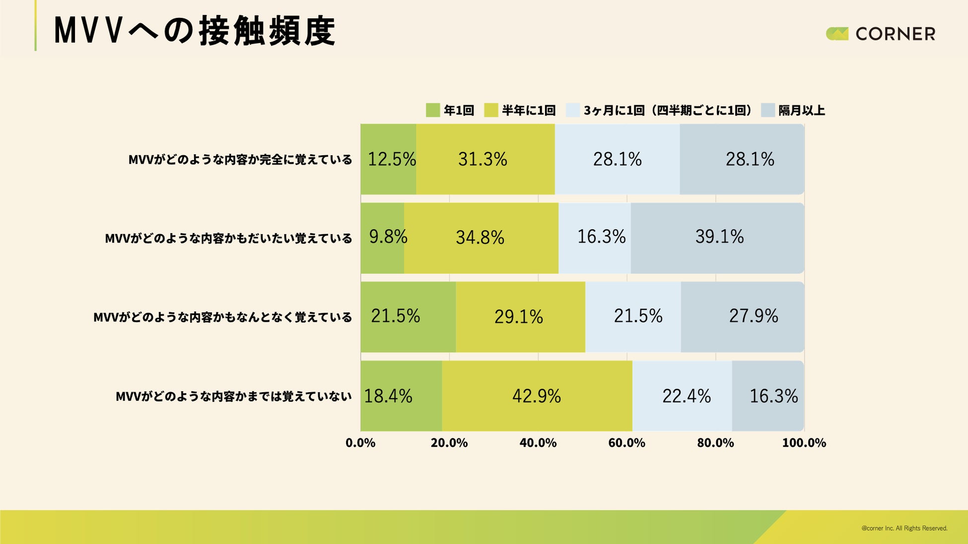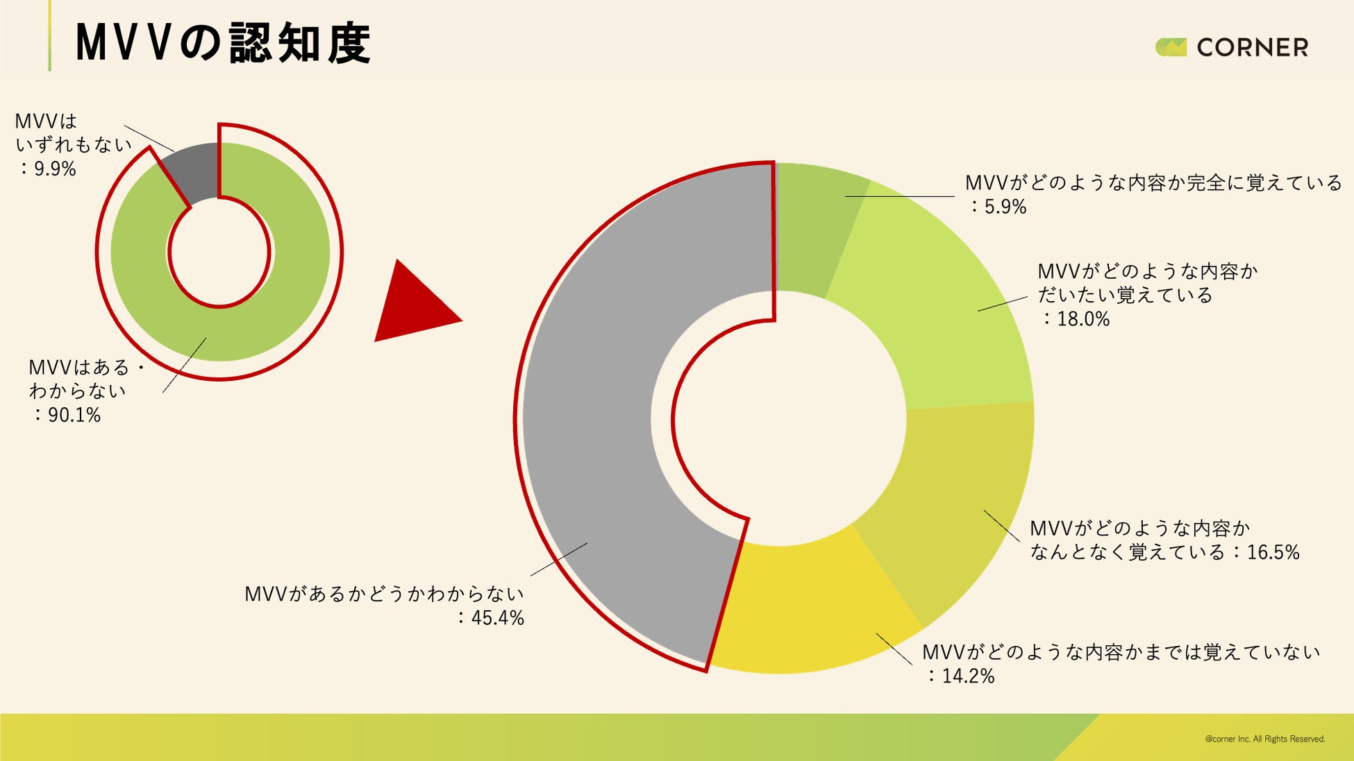 【MVV浸透実態調査レポート】社員の約半数がMVV(ミッション・ビジョン・バリュー)の存在を知らない実態。効果的なMVV浸透施策を探る|CORNER