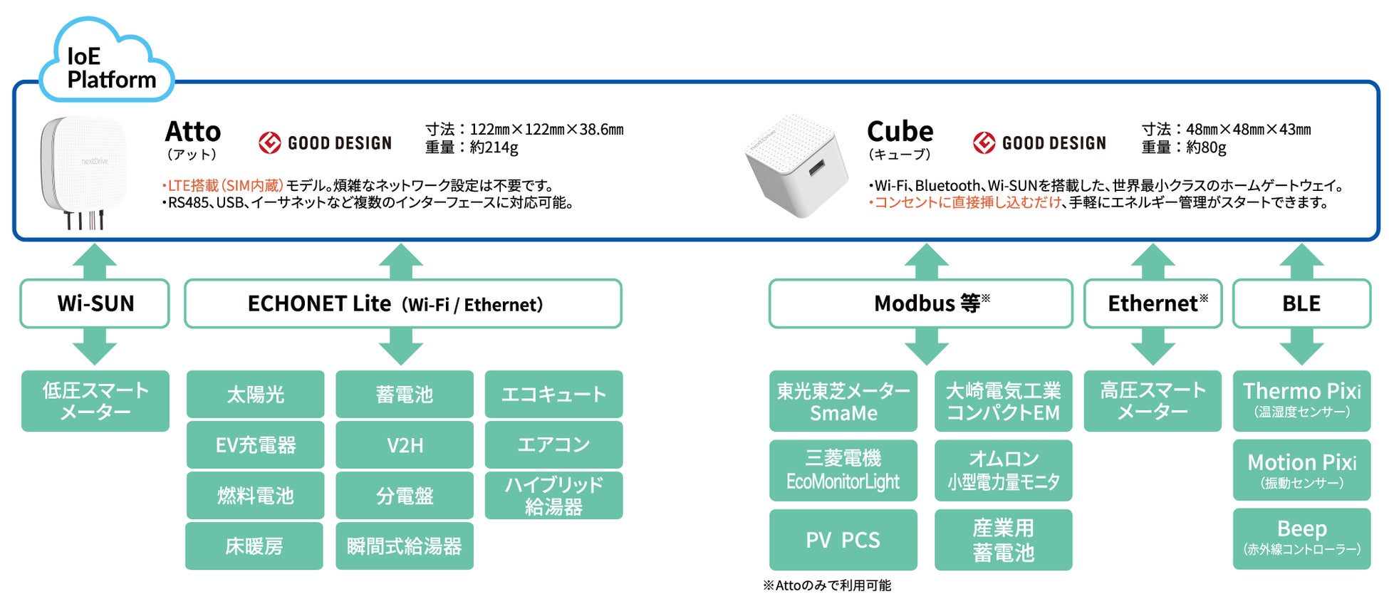 NextDriveが提供するサービスは計量データの取得に留まらず、蓄電池等の各種エネルギーデバイスを管理・制御することも可能な拡張性を有しており、将来のサービス拡充の際にもシームレスな活用が可能となっています。