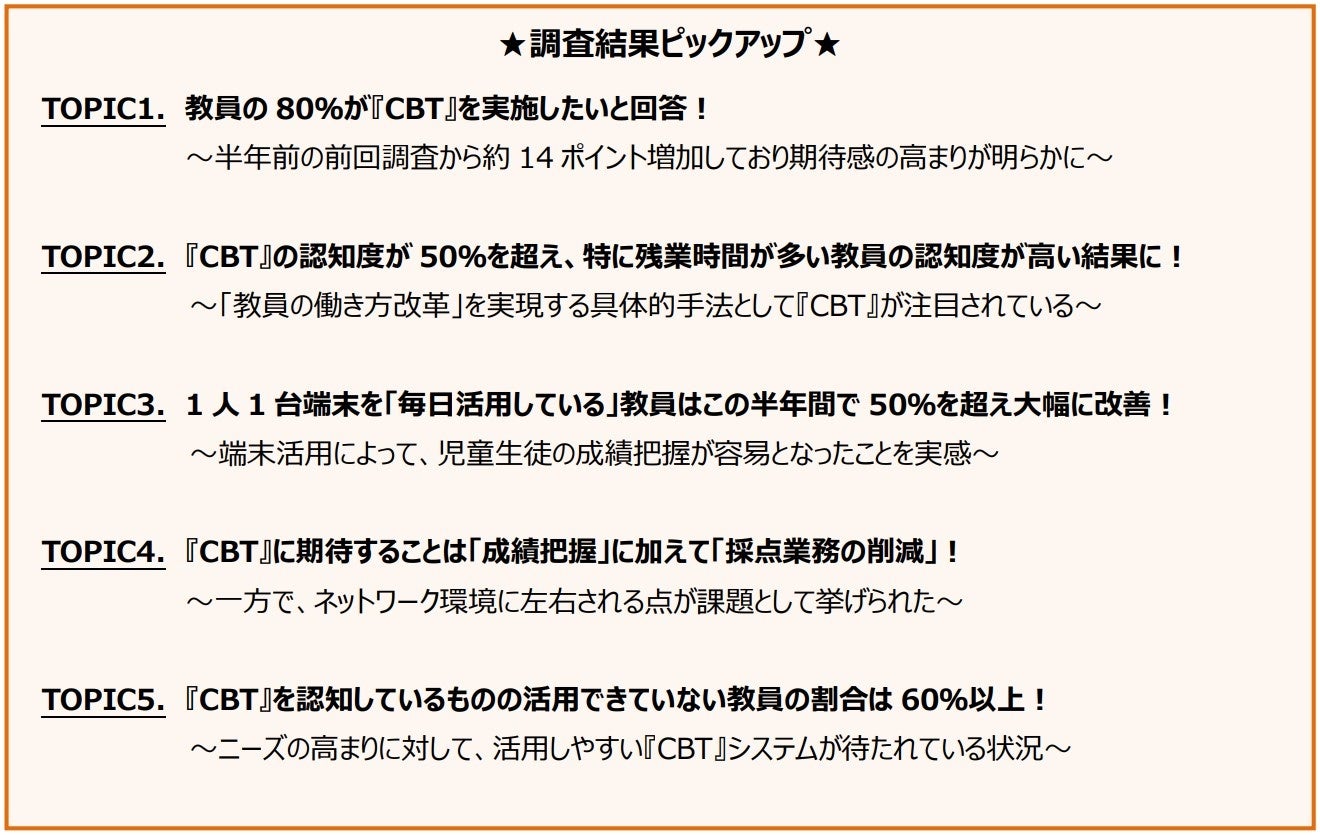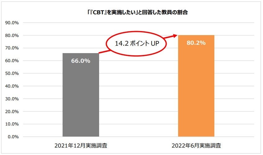 - Topic1.教員の80%が『CBT』を実施したいと回答!~半年前の前回調査から約14ポイント増加しており期待感の高まりが明らかに~