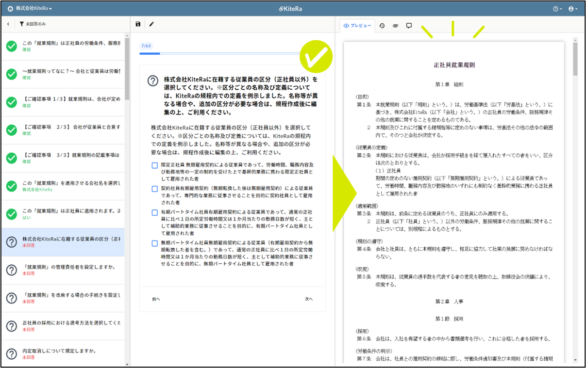 ▲設問回答形式での規程作成機能(イメージ画面)