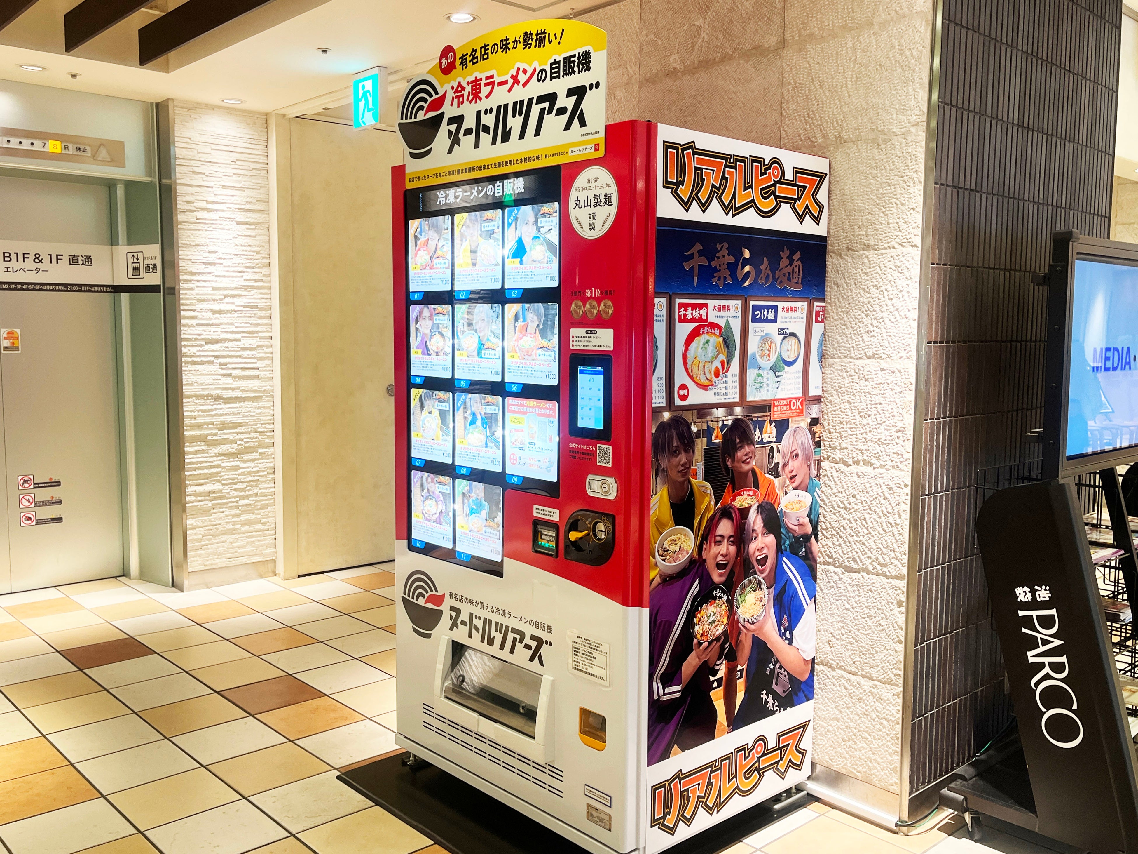 また、冷凍ラーメン自販機「ヌードルツアーズ」のパルコ池袋店での発売にあわせて、期間限定で「ヌードルツアーズ」がリアルピース仕様になります。