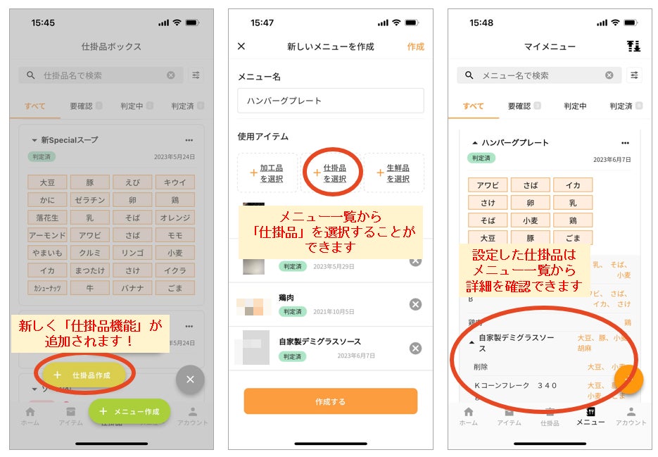 ■あらかじめ仕込んだソースなどの仕掛品も登録可能に!アレルギー管理サービスがバージョンアップ