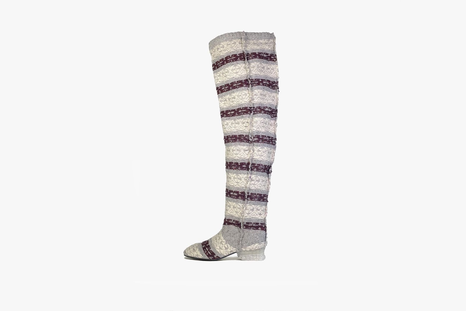 伝統的なフェアアイル柄の英国カントリーサイドニットから着想を得て、子どもたちが古いニットを遊び心たっぷりにリメイクする姿にインスピレーションを受けて生まれたフェアアイルブーツ。この手仕事の魅力を、フットウェアとして新しく表現しました。