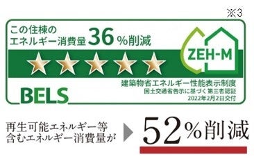 ※1. ※2. 2022年1月MRC調べ。 ※3. 2022年2月の交付時点での評価であり、今後行政官庁の指導または施工上の理由及び改良のため、仕様・仕上げ等が一部変更となり、計算数値等が変更となる可能性がございます。 ※4.2022年3月29日時点で認定を取得しております。