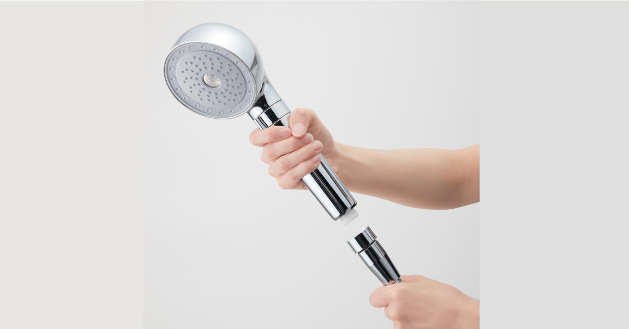 使いやすさを重視し、女性が握りやすいシンプルなデザインはそのまま。長期の使用でも色あせにくい素材を採用しています。また、自宅のシャワーホースに簡単取り付けができ、さらにアダプター付きでさまざまな機種に対応しているため安心して取り付けが可能です。
