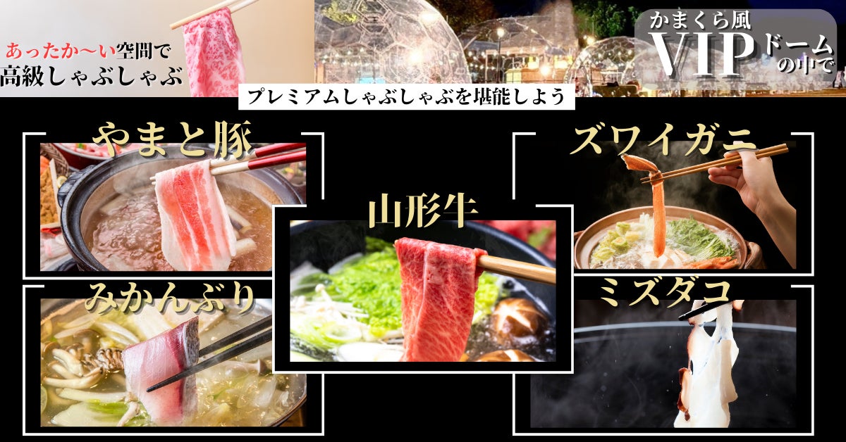 VIPドームの中でのみ楽しめる「プレミアムしゃぶしゃぶ」を堪能できます!