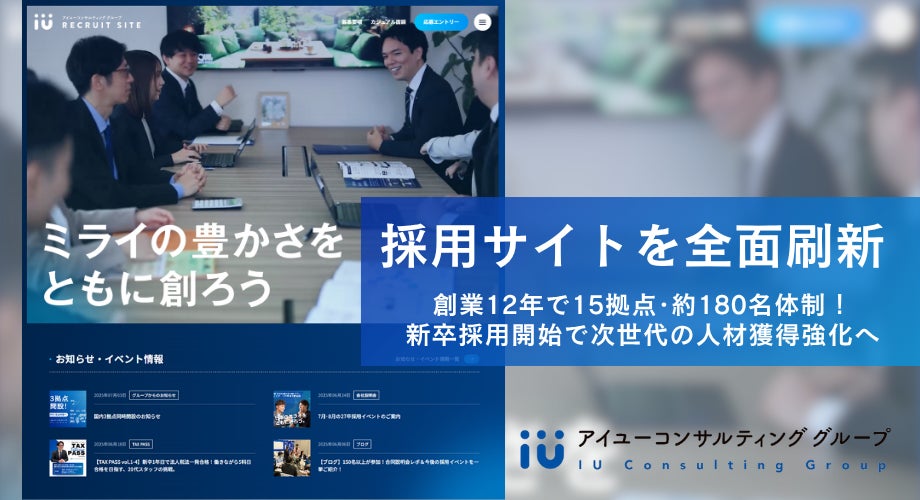 全国トップクラスの相続・事業承継支援実績を誇るアイユーコンサルティンググループ(東京都豊島区、共同代表:岩永 悠/出川 裕基 以下 当グループ)は7月、リクルートサイトを全面リニューアルいたしました。