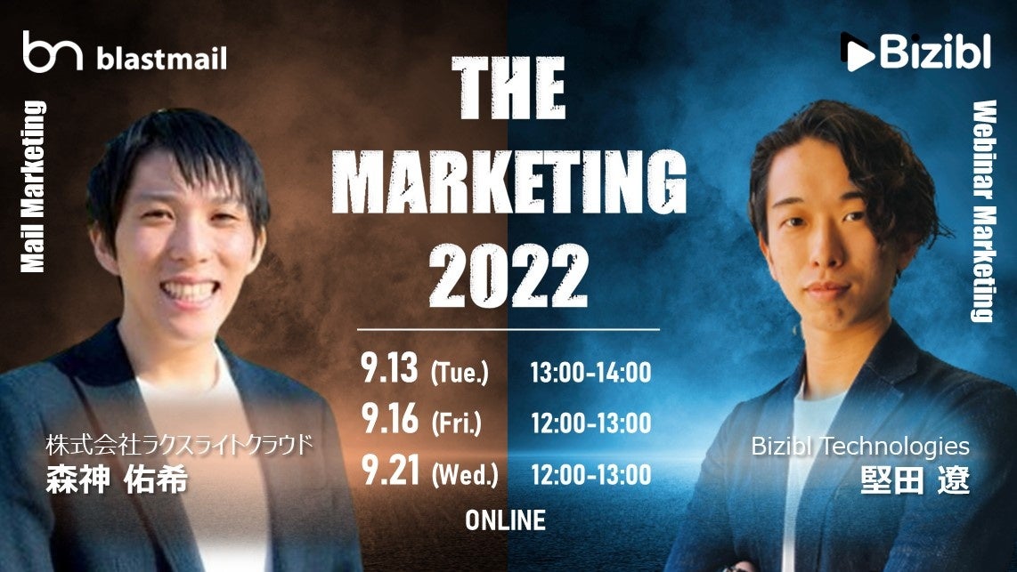 株式会社Bizibl Technologies(本社:大阪市北区、代表取締役:花谷燿平、以下Bizibl)と株式会社ラクスライトクラウド(本社:東京都渋谷区、代表取締役:浅野史彦、以下ラクスライトクラウド)が 対決型ウェビナー「【メールVSウェビナー】THE MARKETING 2022」 を9月13,16,21日に連日開催いたします。