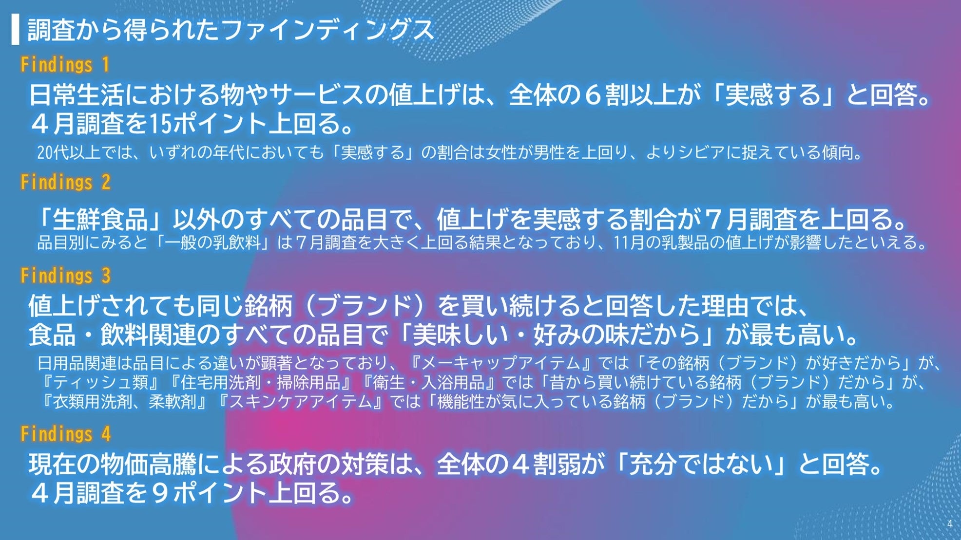 以上、値上げラッシュの秋、消費者はどう行動する? 値上げに関する意識・行動調査<2022秋>の結果を抜粋してお伝えしました。