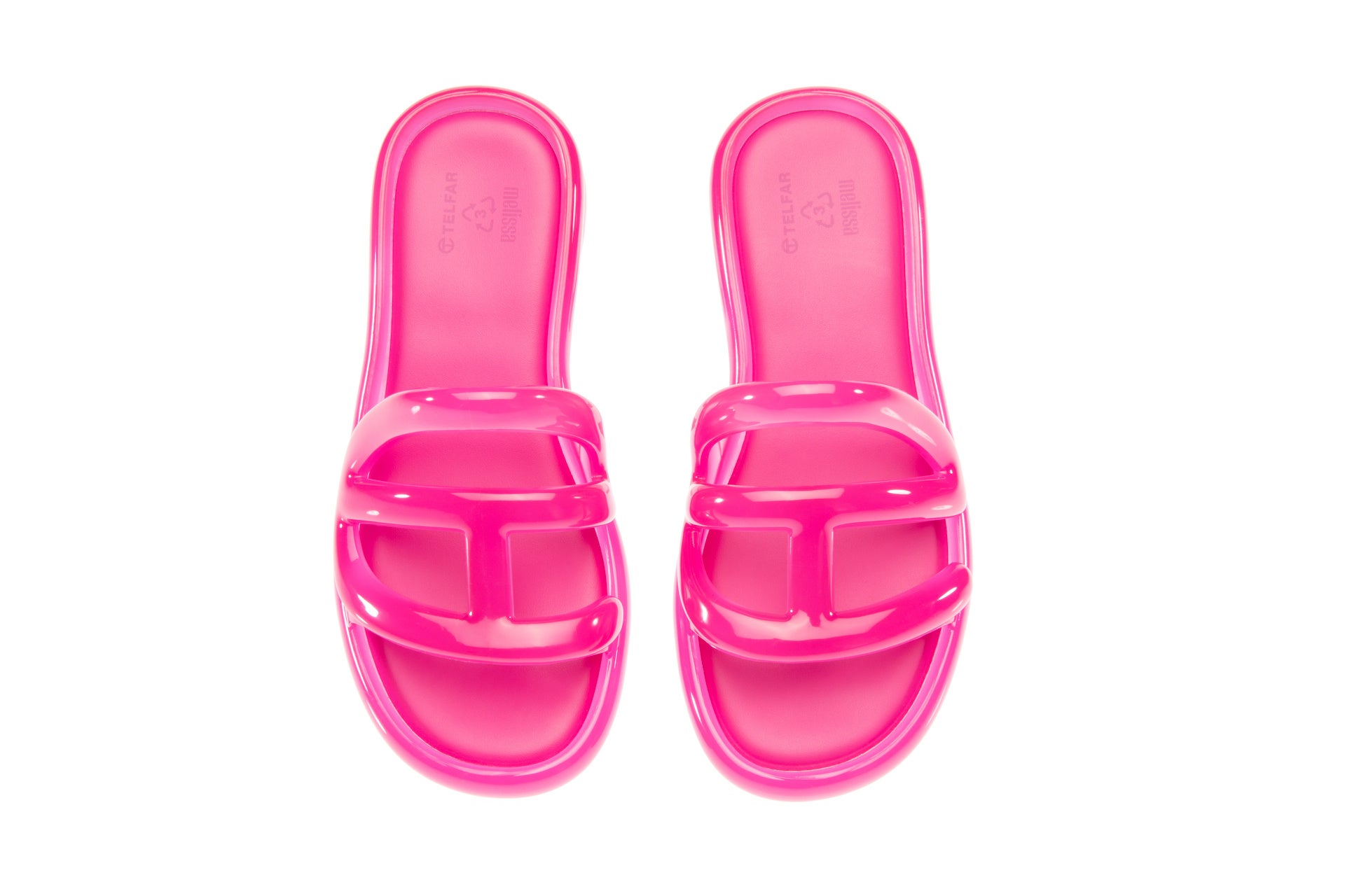 今回テルファーとの初のコラボレーションとなる「TELLY JELLYコレクション」は、テルファーのアイコニックなショッピングバッグをメリッサのPVCクリア素材で再現したTELLY JELLYバッグと、流れるようなチューブが特徴的なユニセックスのスライドサンダルを展開します。全てメリッサ独自の素材である100%リサイクル可能なメルフレックス素材を使用し、トレンド感満載のデザインとサスティナビリティを兼ね揃えたコレクションです。