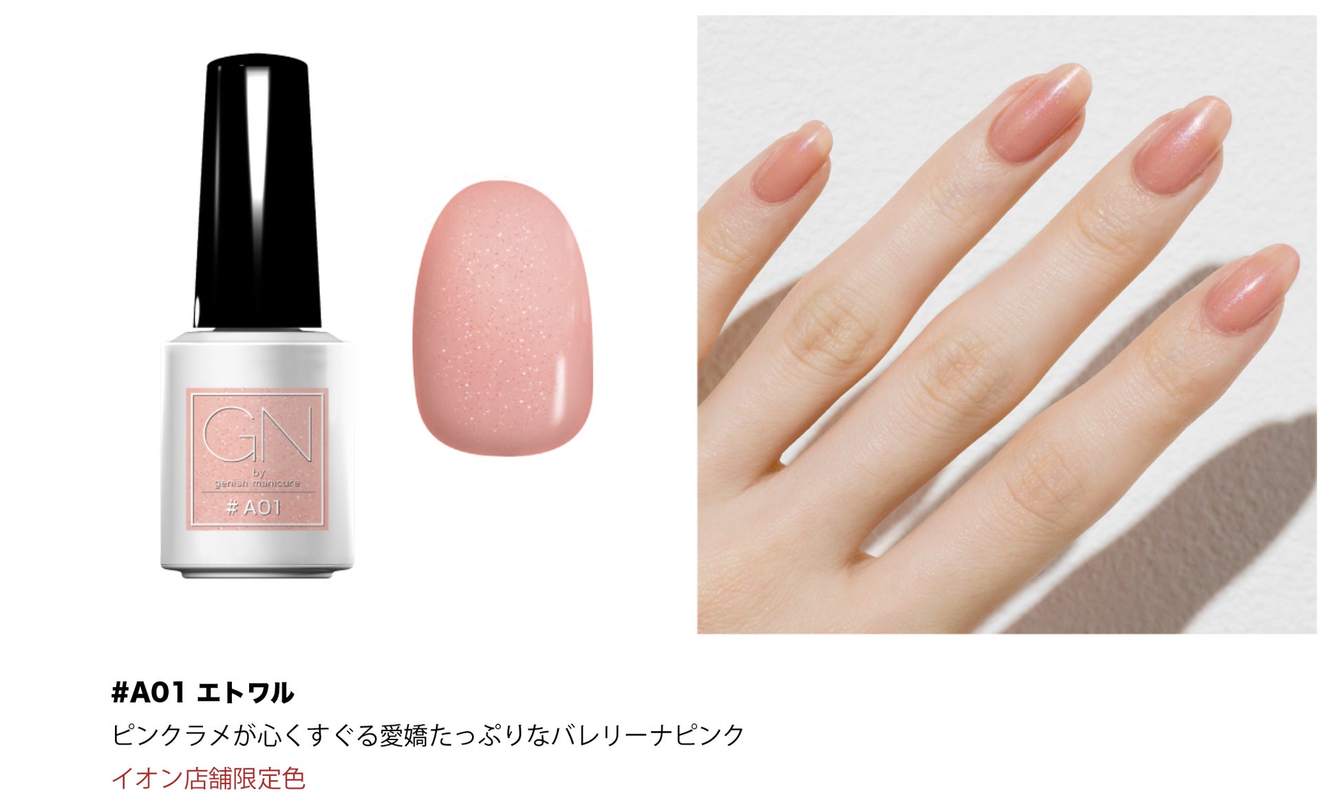ジェルネイル成分(光硬化樹脂)配合の 60 秒速乾マニキュア『ジーエヌ バイ ジーニッシュマニキュア』からイオン店舗限定色が登場します。
