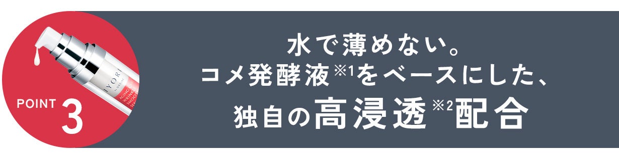 つけた後、潤いを感じさせる「コメ発酵液※1」を水の代わりにベースとして使用。有用成分を肌の奥※2まで送り届けるブースターのような使い心地で、保湿効果も高められます。