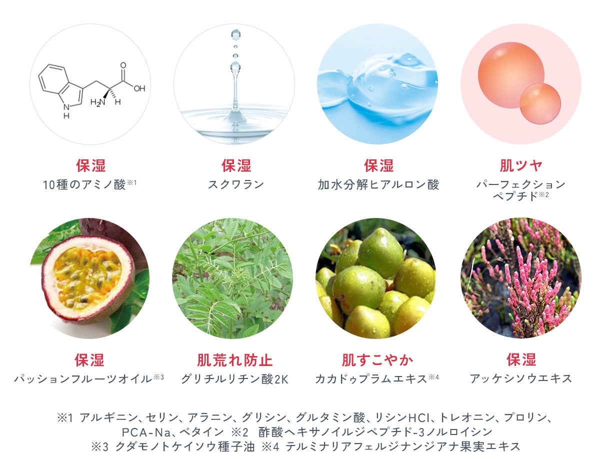 ※1 乾燥による肌のキメの乱れ ※2 乾燥、ハリ不足等年齢に応じた肌悩み