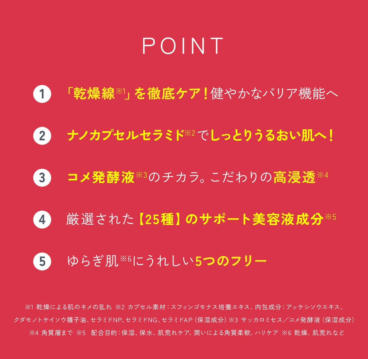 ※1 乾燥による肌のキメの乱れ ※2 年齢に応じたスキンケア ※3 ヘキサカルボキシメチルジペプチド-12(ハリケア成分)