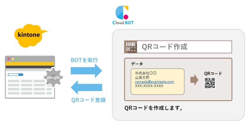 kintoneに登録済みの社員情報をもとにQRコードを自動生成し、kintoneに自動登録する。