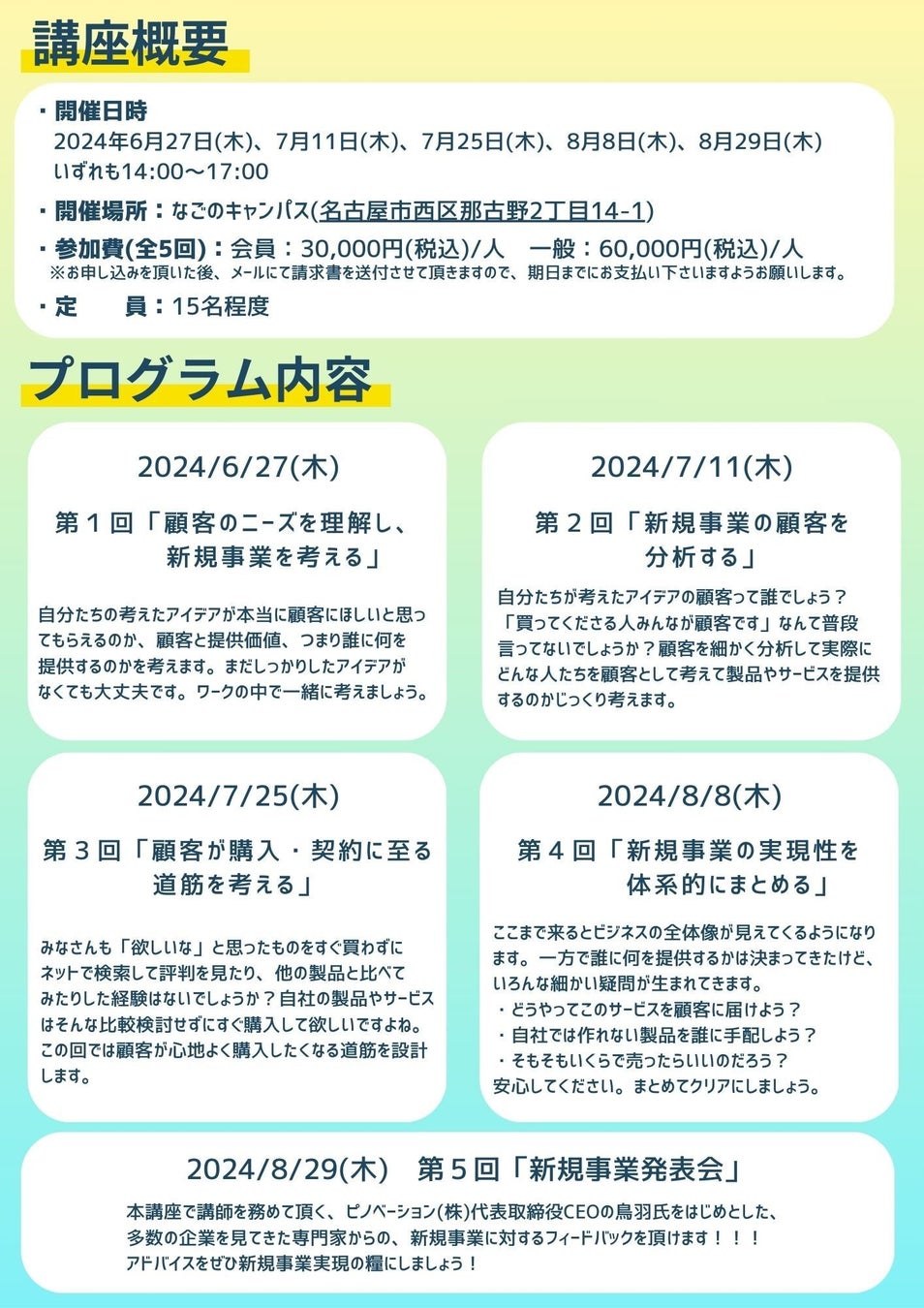 【名古屋商工会議所主催】起業家やベンチャーの育成拠点「なごのキャンパス」にて、新規事業初心者に向けた、新規事業創出プログラムを開催!ピノベーション代表 鳥羽が登壇。